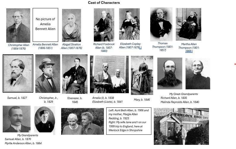 As I began to put my research to words, Albert critiqued my writing and corrected me where I had gotten off track. His niece, Esther Ewing, wrote to me on several occasions and provided new information and anecdotes. Who could ever have imagined that I would have renewed familial ties with a branch of the Allen family separated from mine by my great-grandfather Richard’s move west a century and a half ago?